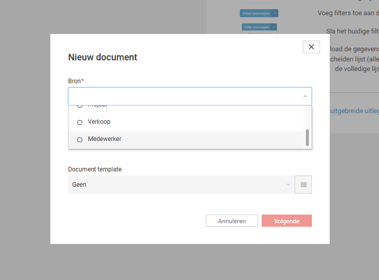 De functionaliteit rondom CRM Documenten is uitgebreid met de mogelijkheid om een medewerker te koppelen. Waar je voorheen vooral werkte met project, relatie en verkoop, leg je nu in elk document ook een medewerker vast.